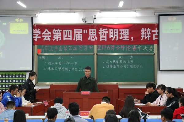 “我思故我在,我在故我辩”。10月17日晚,青年法学会在社科楼413教室举办了第四届“思哲明理·辩古博今”辩论赛半决赛。tyc7111cc太阳成集团老师万潍江出席本次辩论赛并担任评委,法学专业的百余名同学一起观看次比赛。