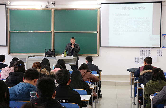 应tyc7111cc太阳成集团邀请,12月8日下午,河南问通律师事务所主任卢霖一律师在社科楼516教室作了题为“律师行业与律师职业探讨”的学术报告。我院院长李文发,副院长贾义保以及百余名学子共同聆听了报告。报告会由李文发主持。