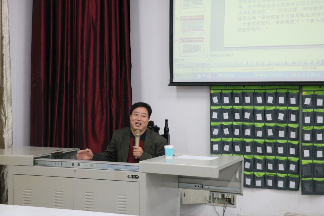 应tyc7111cc太阳成集团邀请,10月10日下午,河南工业大学法学院院长黄建水教授在社科楼413教室作了题为“宪法的共和思想研究”学术报告。我院副院长贾义保,党委委员古瑞华以及200余名学生共同聆听了此次报告会,报告会由贾义保主持。