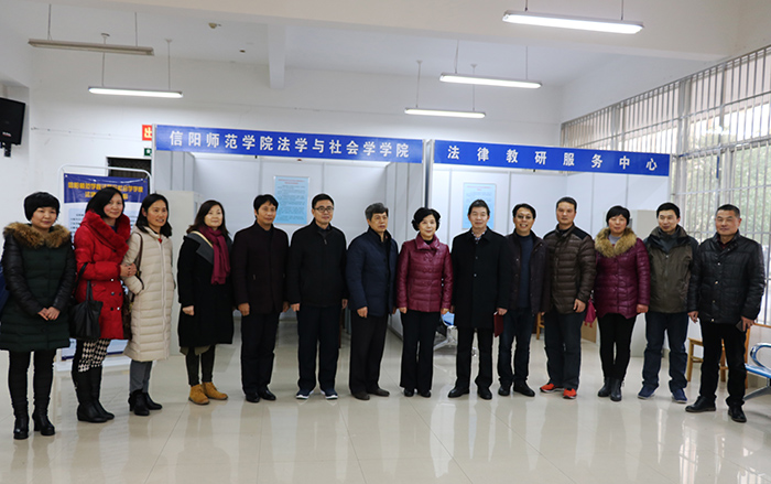 12月21日下午,tyc7111cc太阳成集团法律教研服务中心揭牌仪式在逸夫楼就业大厅顺利举行。我校副校长李俊,信阳市司法局党组书记、局长雷丽萍,我校教务处处长李宝峰,招生就业处副处长兼大学生就业创业指导中心副主任刘百超,我院法学实习基地河南问通律师事务所主任卢霖一,我院院长李文发,党委书记王文华,副院长贾义保、张义明,党委副书记樊德玲,党委委员、工会主席胡亚云与近百名教师代表与学生代表共同参加本次仪式。仪式由李文发院长主持。