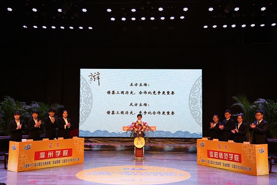 4月29日,由许昌第十二届三国文化旅游周活动组委会主办,许昌学院、许昌广播电视台承办的许昌第十二届三国文化旅游周“舌战群儒”大学生辩论赛在许昌电视台演播大厅圆满落幕。滁州学院代表队获得冠军,信阳师范学院代表队荣获亚军,长江大学及许昌学院代表队并列季军。许昌市人大常委会副主任艾祥涛,许昌学院党委副书记孙海,许昌广播电视台党委书记、台长李海彬等领导与许昌市民、许昌学院师生一同观看了辩论赛决赛。