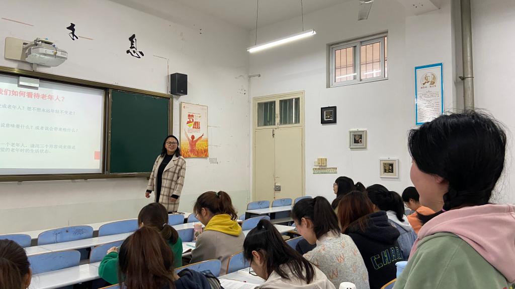 教学观摩环节,由参加学院教学大赛的胡宏琴老师主讲。胡老师以案例为切入点,系统讲授了人口老龄化即将给个人、家庭以及社会带来的改变以及社会工作的应对策略。整节课高度重视教师引导、案例教学、师生互动、课程思政元素的有机融入和网络教学平台的运用,学生学习积极性被充分激发,课堂气氛轻松愉悦。
