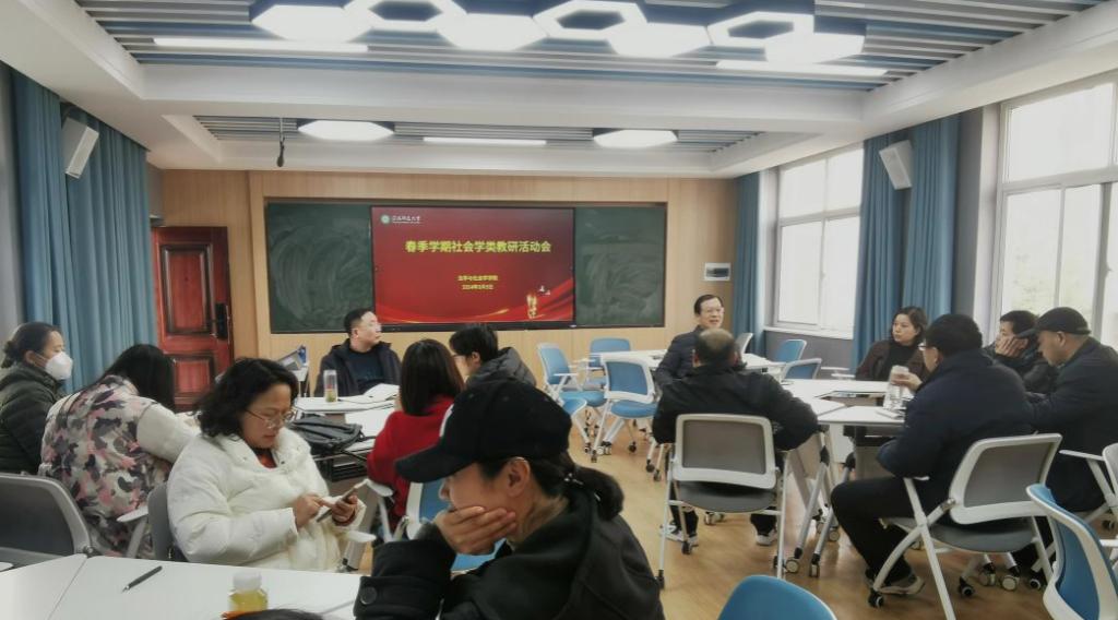 祁中山介绍了社会学类专业面临的形势任务、近年来的教学科研情况、亟待解决的问题及个人对教学研究主题的思考。社会学系主任杜连峰以实际工作为切入点,结合先前工作的经验,对本学期读书会的形式进行调整,并已统筹预备春季学生调查实践活动。与会教师充分表达意见,就学科融合发展、教学科研工作交流分享,统一认识。