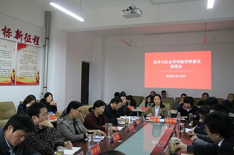 院长李文发就我院2019年学科建设目标任务、目前的短板进行说明,指出我院学科建设应当秉承总体规划、分步实施、重点突破、全面提高的建设思路,力争早日获批法学一级学科硕士点、社会工作专业硕士点。