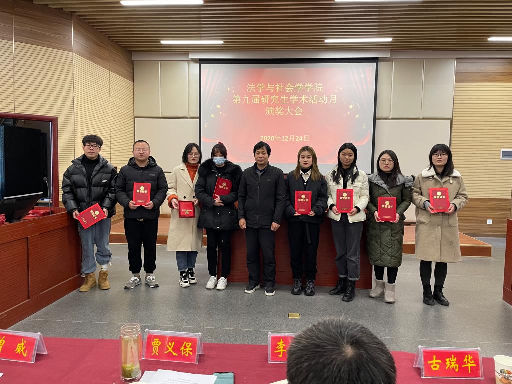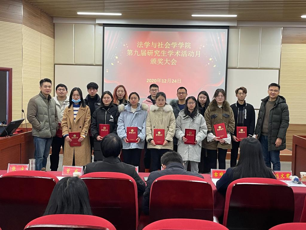 时间:2020-12-25 16:45 来源: 作者:李佳怡 阅读: 次12月24日上午,法社学院第九届研究生学术活动月颁奖大会在社科楼413模拟法庭举行。我院院长李文发教授、副院长贾义保教授、党委委员古瑞华副教授、实践教学中心主任张宇博士、曾威博士出席本次大会,2019级和2020级全体法律硕士参加了此次活动,会议由刘文君博士主持。