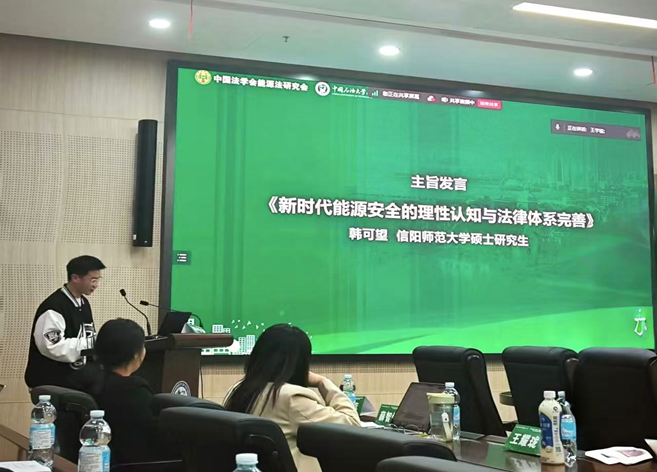 我院法律硕士韩可望参加此次论坛并做主旨发言,与来自中国人民大学、中国政法大学、重庆大学、吉林大学、中国海洋大学、中南财经政法大学、山西大学、福州大学、郑州大学、西南石油大学、北方工业大学、兰州理工大学、中国石油大学(华东)等全国10余所高校的硕博研究生围绕“中国自主能源法体系构建的基础理论与方法论”“中国自主能源法体系建构与部门法的融合”“中国自主能源法体系建构中的本土化与国际化”“中国自主能源法的内在逻辑和法律表达”“中国能源转型发展中的热点法律问题”等主题分享了研究成果,交流了学术思考,共享科研经验。