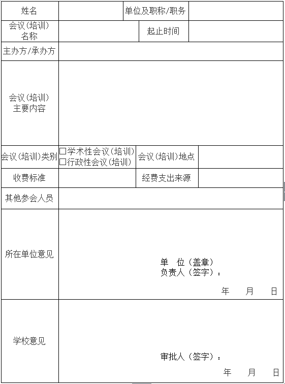 信阳师范学院教职工外出参加会议(培训)审批表