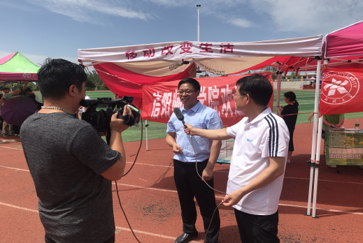 在郏县一高招生宣传期间,麻雪峰博士代表招生组接受郏县电视台的采访,介绍了我校的发展情况以及今年的招生计划、预估分数线等。