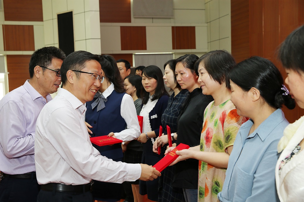 典礼在雄壮的国歌声中拉开序幕。郜火星向21名获得法社学院“突出贡献奖”荣誉称号的教师颁发证书,向2019年获批国家社科基金项目的社会学博士刘炳琴颁发一万元科研资助经费。典礼上还表彰了“学习标兵”、“先进班集体(社团)”荣誉称号获得者。