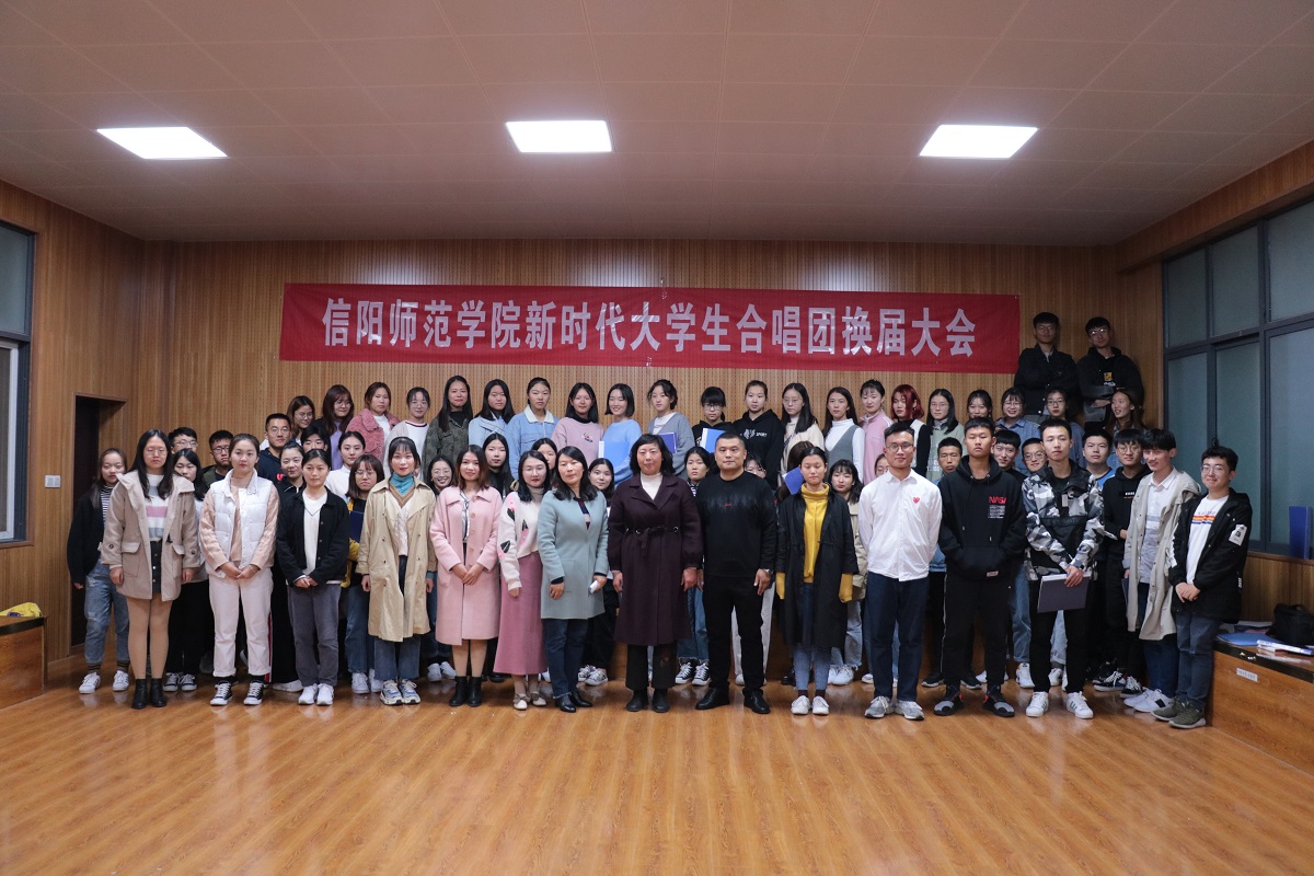 新时代大学生合唱团以“唱响新时代主旋律,传播青春正能量”为理念,三年来先后完成了《在灿烂阳光下》《天边》《放心去飞》《跪羊图》《美丽的草原我的家》《歌唱祖国》《我宣誓》《不忘初心》《我和我的祖国》等艺术作品的排练,参加了信阳师范学院迎新晚会、学校“讲价值观故事、实现青春梦想”展演活动、信阳师范学院庆祝新中国成立70周年文艺汇演等大型活动。