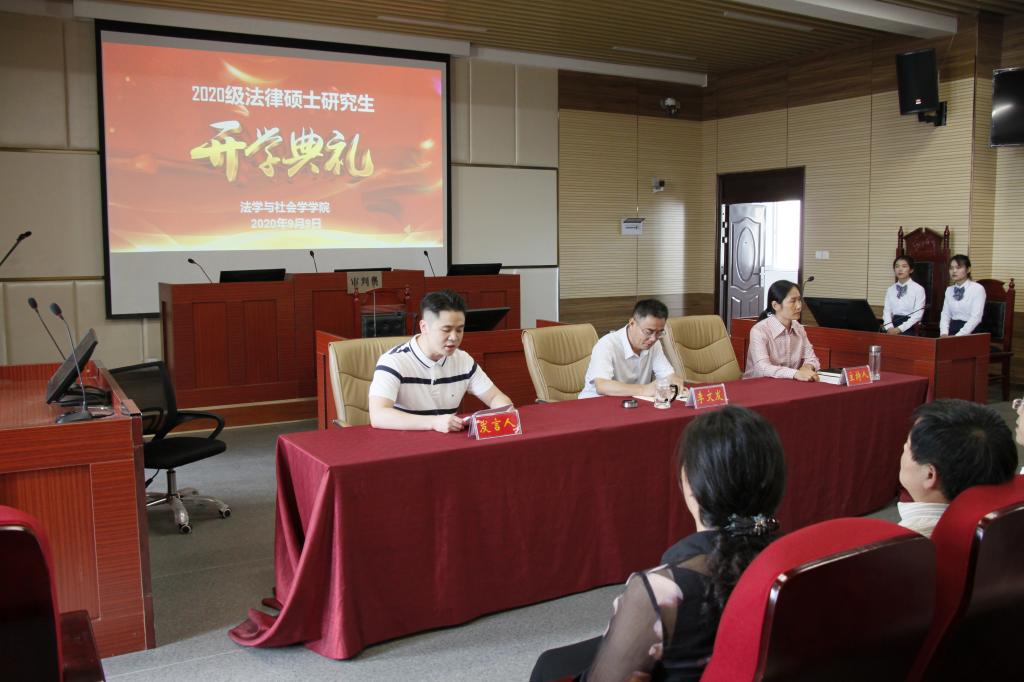 时间:2020-09-09 17:20 来源: 作者:刘文君 阅读: 次9月9日上午,我院2020级法律硕士研究生开学典礼在模拟法庭举行。学院班子成员李文发、贾义保、张义明、樊德玲、胡亚云、古瑞华,研究生导师、任课教师代表与2020级34名研究生参加典礼。学院党委委员古瑞华副教授主持典礼。