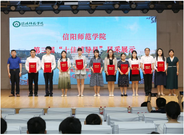 时间:2021-06-12 09:44 来源: 作者: 阅读: 次6月11日,信阳师范学院第三届“十佳辅导员”评选之风采展示在理科楼报告厅举行。校党委副书记、工会主席王文臣,副校长郑云出席评选活动并颁奖。本届评选严格按照申报推荐、量化考核、大赛选评、现场评审环节等综合考核评价。我院辅导员袁艳红老师以扎实的工作、优异的表现当选学校第三届“十佳辅导员”称号,实现了法社学院校级“十佳辅导员”零的突破。