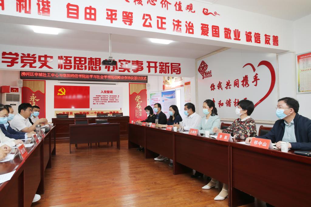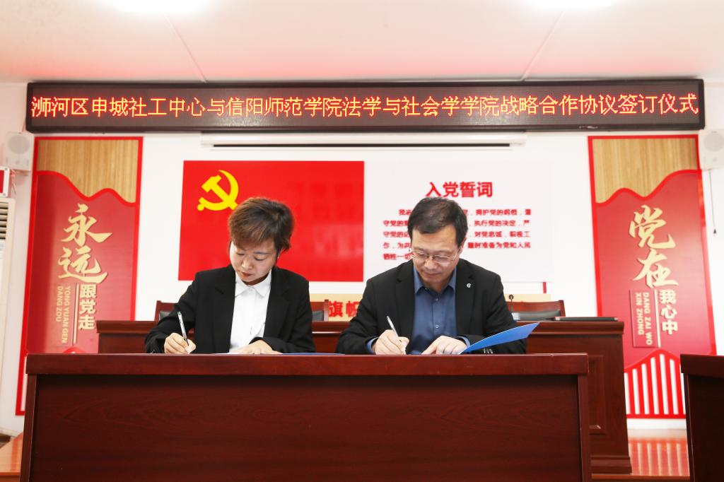 经过充分交流研讨,张玉鹏与申城社会工作服务中心负责人肖新凤代表双方签订战略合作协议。会后,与会人员参观了金牛山办事处社会工作服务站、申城社会工作服务中心和周家山党群服务中心。