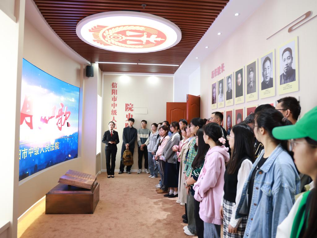 活动中,我院师生在法院工作人员的带领下现场观摩了法院安检工作,参观了诉讼服务中心、执行指挥中心和院史馆,并旁听了一场交通事故责任纠纷案件的庭审。参访过程中,同学们近距离感受了信阳市中级人民法院在智能化诉讼服务系统建设、综合性服务中心建设等方面取得的成果以及在新时代中让人民群众在每一个司法案件中感受公平正义的司法理念。