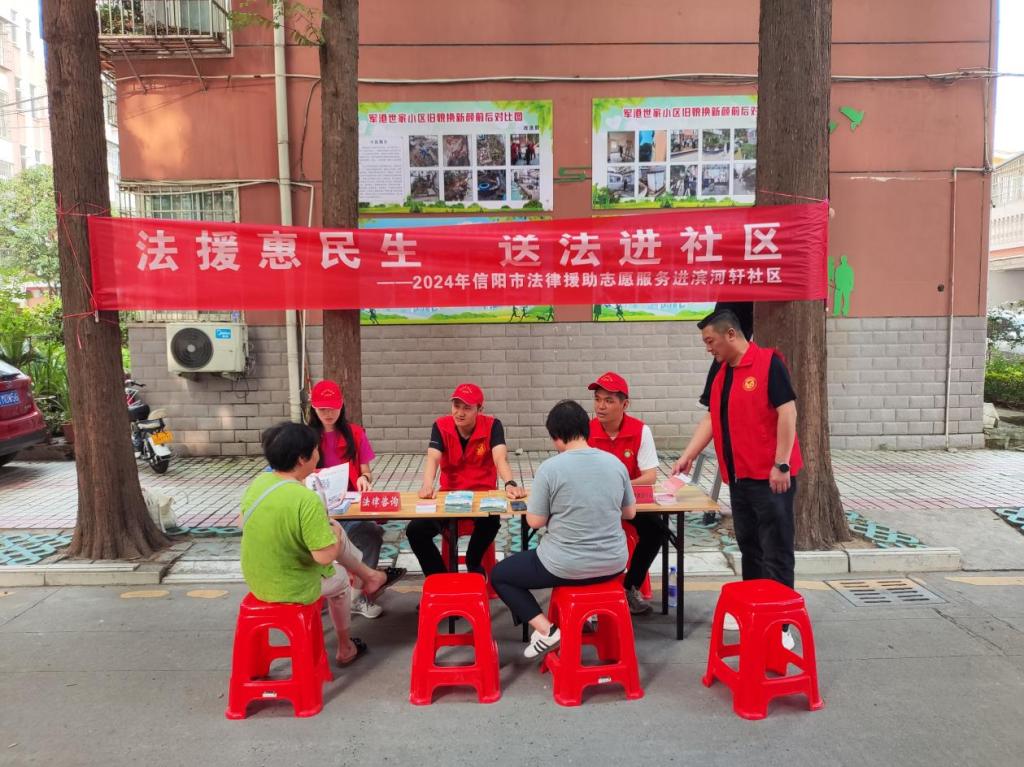 时间:2024-09-06 15:31 来源: 作者: 阅读: 次9月5日下午,tyc7111cc太阳成集团联合信阳市法律援助中心深入信阳市浉河区滨河轩社区联合开展“法援惠民生,送法进社区”法律援助志愿服务活动。
