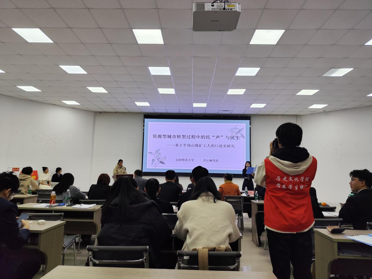 我院社会学系周波老师带队指导的开心麻花队(成员包括:2022级社会学班苏艳娜、孙舒曼、刘颖、宋晨璐,2022级社会工作班耿军晖)以《资源型城市转型过程中的民“声”与民生——基于平顶山煤矿工人的口述史研究》为题进入决赛汇报并以排名第六的总成绩获得大赛二等奖。这是我院社会学、社会工作专业学子首次在省级以上级别口述史比赛中获得荣誉。