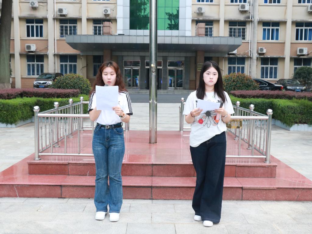 仪式在庄严的国歌声中拉开帷幕。全体师生肃立行注目礼,注视着五星红旗冉冉升起,迎风飘扬。升旗仪式后,2025级法学班李佳燕同学作为新生代表发言。她表示,作为新时代大学生,应牢记历史使命,坚定理想信念,努力成长为有理想、敢担当、能吃苦、肯奋斗的新时代好青年。随后,2025级法学班侯丁戈与社会工作班赵浚彤同学共同朗诵诗歌《这盛世如您所愿》,深情表达对祖国繁荣发展的自豪与对先辈的敬意。学院团委学生会执行主席刘雨田在发言中鼓励新生积极融入大学生活,参与各类实践活动,不断提升综合素质,为学院发展贡献青春力量。仪式最后,全体师生齐声合唱《歌唱祖国》,用歌声表达对祖国的热爱与祝福,将现场氛围推向高潮。