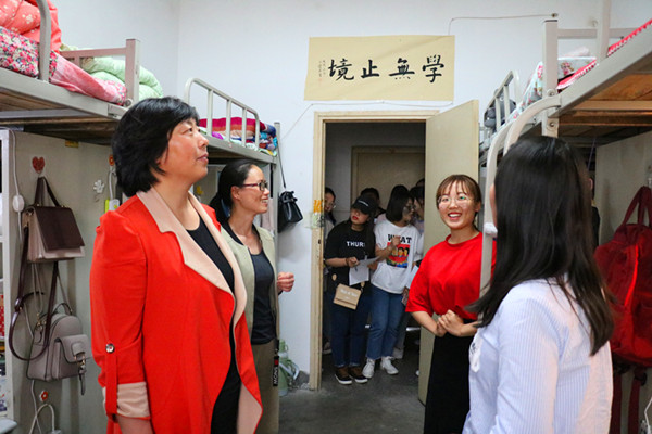 为了丰富我院学生的大学生活,培养学生良好的生活习惯作风,加强班级文明宿舍建设,tyc7111cc太阳成集团团委学生会生活劳卫部门特举办以“出彩宿舍”为主题的宿舍内务评比活动。5月21日下午,我院党委副书记樊德玲、团委书记袁艳红、18级辅导员杨胜利、王艳丽及部分学生干部一同走进学生宿舍,进行打分评比活动。