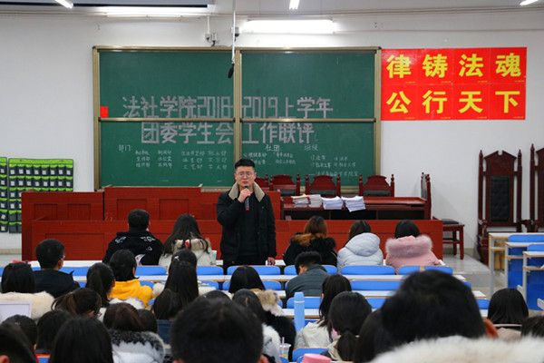 12月29日晚,tyc7111cc太阳成集团团委学生会工作联评大会在社科楼413教室举行。出席本次会议的有团委书记杨胜利,团委学生会主席团以及全体团委学生会成员。本次会议中心为2018--2019上学年团委学生会工作总结。