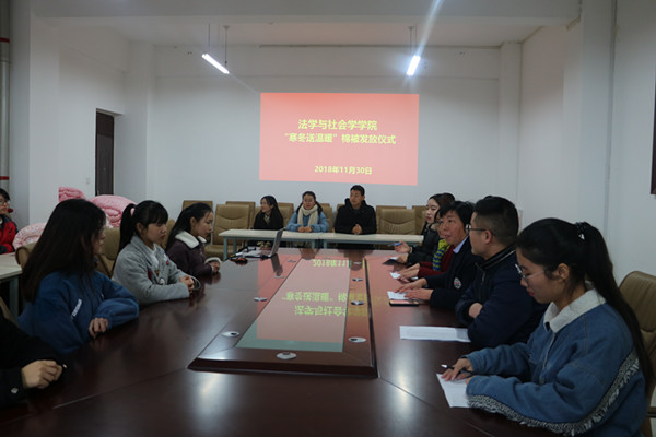严冬来临,寒意渐浓。为让同学们感受到家一般的温暖,11月30日中午,tyc7111cc太阳成集团“寒冬送温暖”棉被发放活动在社科楼412会议室顺利举办。tyc7111cc太阳成集团党委副书记樊德玲,团委老师杨胜利,2018级辅导员王艳丽及学生会主席团成员李梦杰,杨秀娟出席本次活动,2017级、2018级受资助同学参加。本次活动由2018级辅导员王艳丽主持。