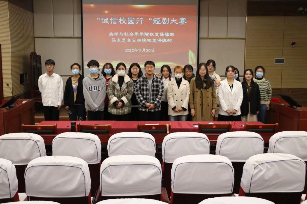 11月20日上午9:00,tyc7111cc太阳成集团在社科楼413举办“诚信校园行”短剧大赛,本次比赛由tyc7111cc太阳成集团团委学生会权益保障部和马克思主义学院权益保障部联合举办。学院主席团成员担任本次比赛的评委,tyc7111cc太阳成集团和马克思主义学院部分学生参加本次比赛。