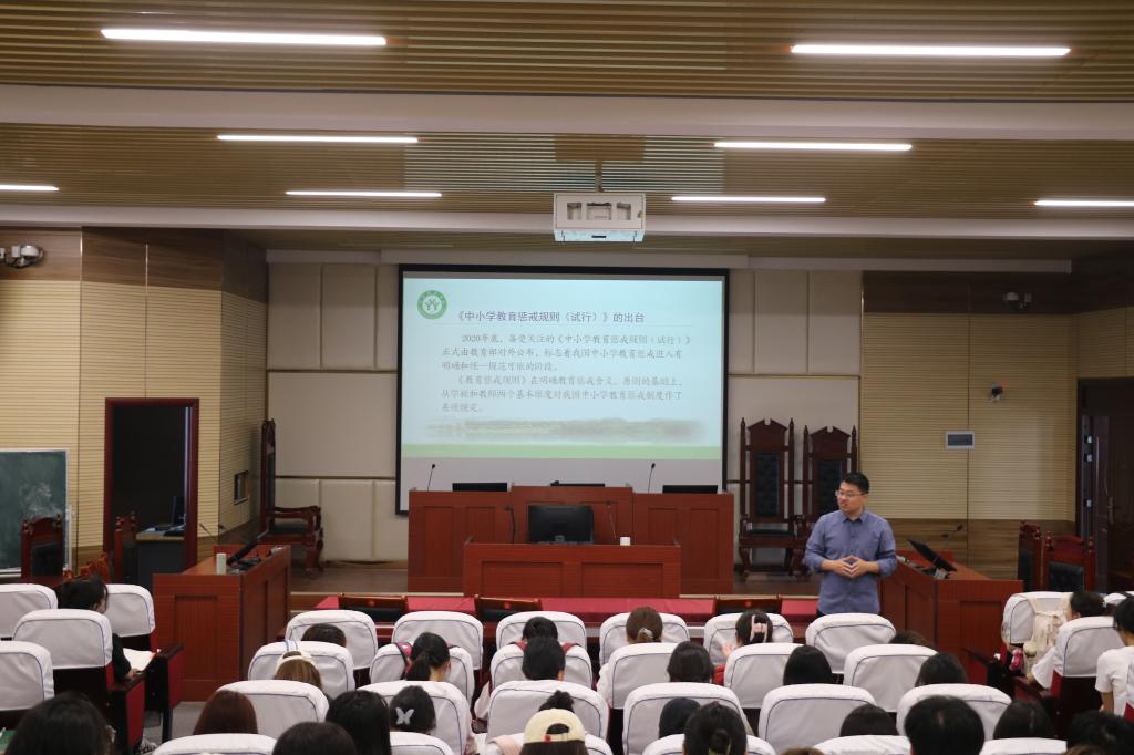 4月19日,tyc7111cc太阳成集团朱茂磊博士于社科楼413面向全校师生开展“中小学班级规则可以规定教育惩戒措施吗?”主题讲座。我校部分学生代表聆听此次讲座。