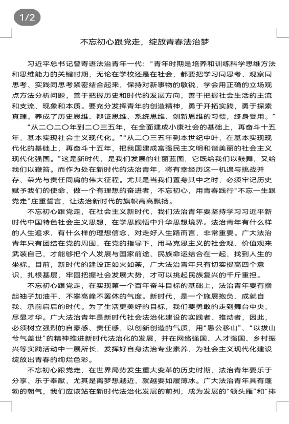 4月20日-21日,我院举办了“学习习近平法治思想,争做新时代先锋”主题征文活动。征文活动通过线上的形式,面向全校同学开展。大学生们思维活跃,才思敏捷,纷纷通过各种途径深入系统学习习近平法治思想,不断加深对习近平法治思想的理解认识,同时,结合理论与实际,书写了一篇又一篇精彩的征文并进行了提交。