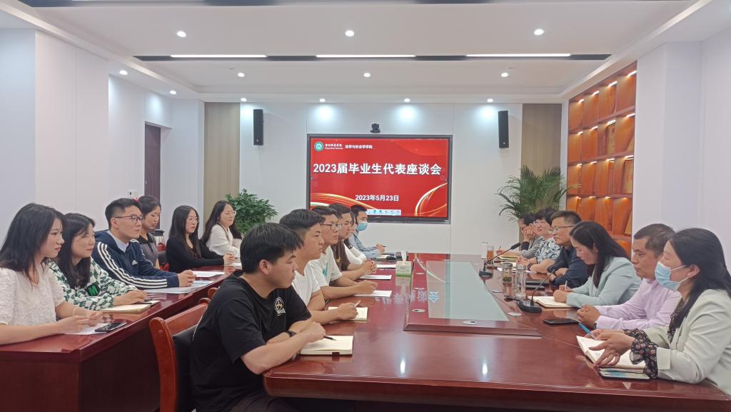 5月23日下午,tyc7111cc太阳成集团在社科楼412召开毕业生“十个一”主题教育活动之毕业生交流座谈会。党委书记尚红林、副院长(主持工作)古瑞华、党委副书记李莉,辅导员郭瑞、袁艳红、王艳丽、费泽丹参加会议。会议由学院党委副书记李莉主持。