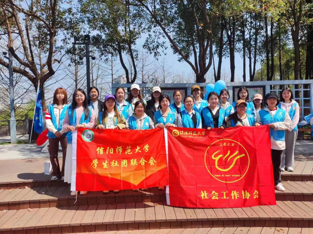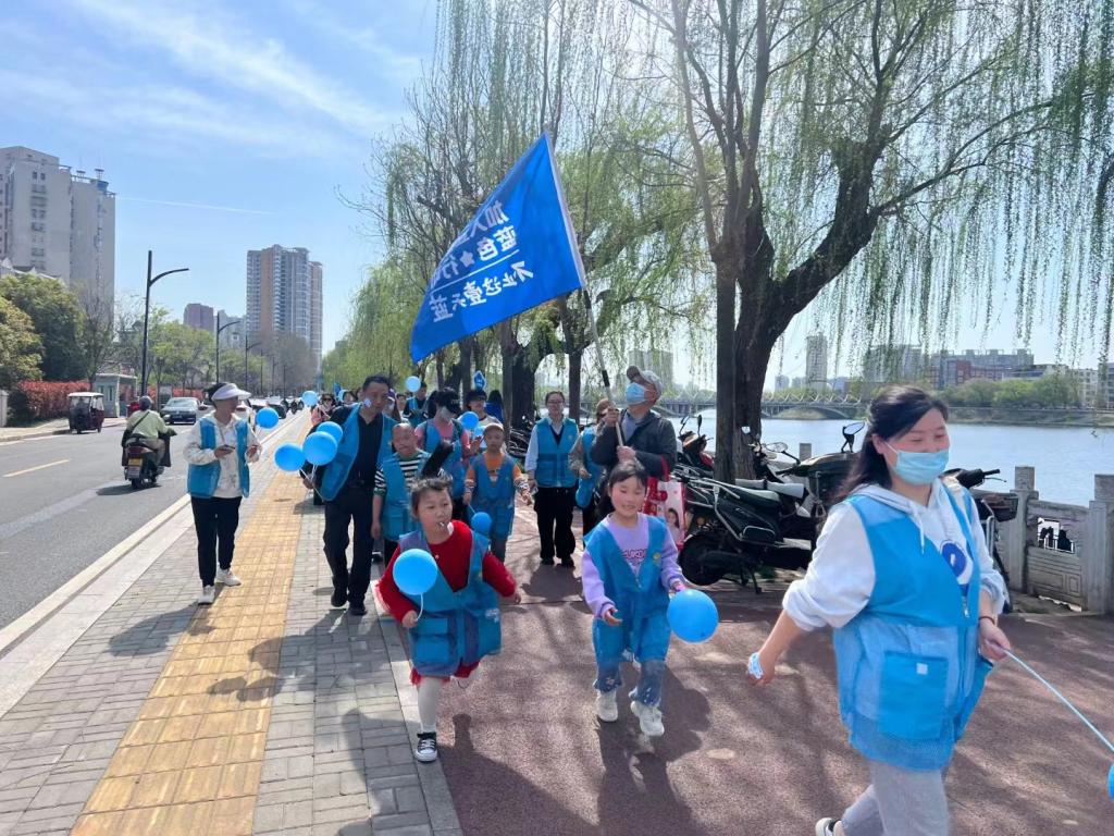 活动伊始,社会工作协会志愿者和孤独症儿童在西关健身广场集合后,带领他们从浉河岸边徒步到达茶韵广场。接着,在茶韵广场,活动组织者对徒步活动进行总结,并为孤独症儿童颁发礼物表示鼓励。最后,为加强社会对孤独症儿童的理解与支持,社会工作协会志愿者在广场上派发传单对“孤独症”进行普及宣传,志愿者们在活动中不仅提供了专业的陪伴和指导,还帮助孤独症儿童更好地融入社会,建立自信和自尊,通过亲近自然、体验生活,孤独症儿童逐渐发现自己的优点,展现出自己独特的魅力。