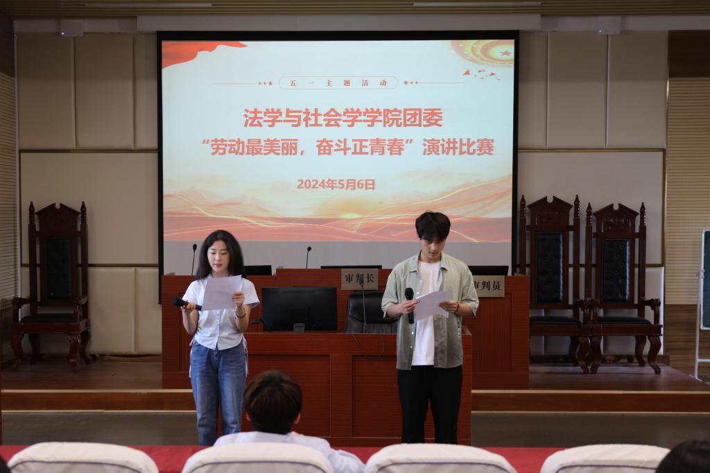 为强化学生奋斗意识,弘扬奋斗精神,tyc7111cc太阳成集团团委于5月6日在社科楼413举办“劳动最美丽,奋斗正青春”演讲比赛。面向法学与社会学全体学生开展。