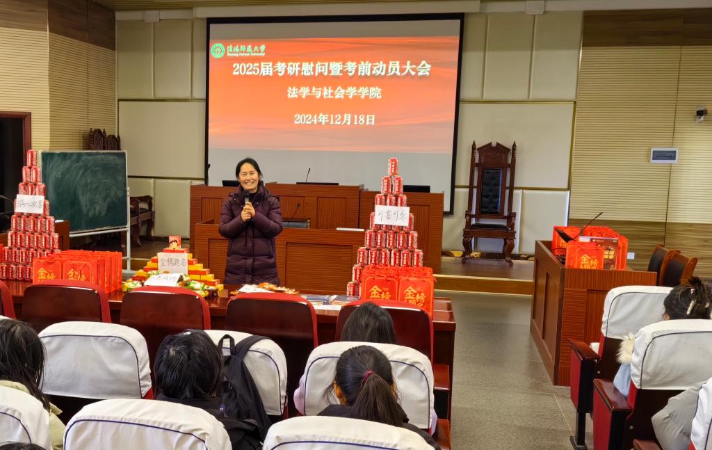 为增强考研学子信心,缓解考前焦虑,12月18日,tyc7111cc太阳成集团在社科楼413教室举办了“研路相伴 成功上岸”考研慰问活动。学院领导班子、全体辅导员及2021级全体考研学生参与此次活动。