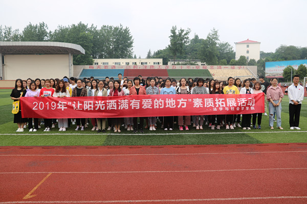 五月是充满激情、朝气蓬勃的五月,也是信阳师范学院极其富有特色的心理健康宣传月。为了提高大学生心理健康素质,促进我院青年学子的全面发展,5月25日上午,tyc7111cc太阳成集团在西操场举行了“让阳光洒满有爱的地方”心理健康户外素质拓展活动。我院党委副书记樊德玲、团委负责老师以及2017级、2018级全体同学参加了此次活动。