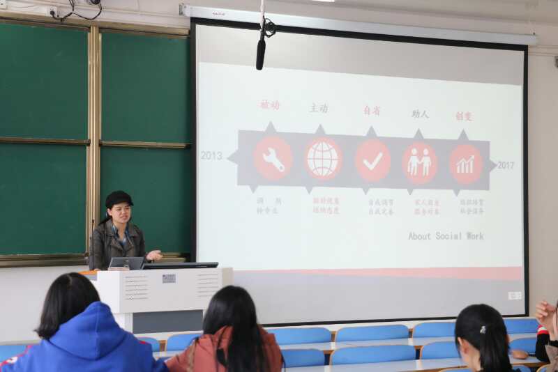 分享会上,许友娇介绍了自己香港求学的经历和感想,通过自身对社会工作的理解,结合她在实习时接触的多种案例,分析了当前社会工作者扮演的角色,提出一位好社工需要具备的职业技能。许友娇告诫大家,不论是目前的大学生活还是日后的工作都应养成不断学习的习惯和能力,以求更好地帮助服务对象,同时不断提升自己。
