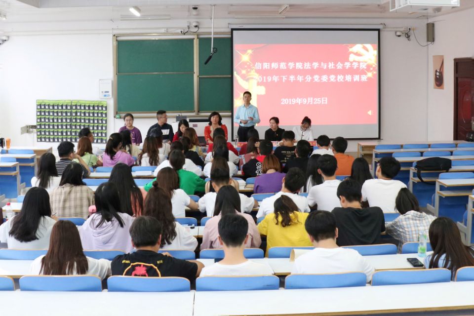 9月25日,信阳师范学院tyc7111cc太阳成集团分党委党校开班仪式在社会科学楼517教室顺利举办。tyc7111cc太阳成集团副院长兼党委副书记张义明,党委副书记樊德玲,专职组织员武向朋,学院老师王艳丽,姜帅合,杨胜利出席开班仪式,学生会主席团成员及各部门负责人参加活动,团委书记袁艳红主持活动。