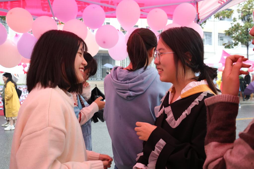 淅淅沥沥的小雨,也挡不住大家的参与热情,活动持续至下午5点才陆续结束。本届宣传周以“健康青春你我,奉献伟大祖国”为主题。在此次游园会中,负责人们用心策划,同学们踊跃参与。樊德玲老师和袁艳红老师也冒着雨来到现场指导,感受同学们的热情与活力。在我院心理健康部的组织下,同学们开始了“纸杯传水”游戏,同学们分成小组并给每人发一个纸杯,只可以用嘴衔着杯子按顺序依次来完成递水,最后剩水多的一方获胜。特定的游戏动作为游戏增添了更多乐趣。在愉快的氛围中,第二个游戏紧接着开始。“传递成语”将同学们分成两队,由只知道成语的第一个人通过肢体语言向后传递,在规定时间内猜对多者胜。在表达的过程中,同学们会出现一些抓耳挠腮、上窜下跳、手忙脚乱的现象,让整个活动现场充满欢声笑语。