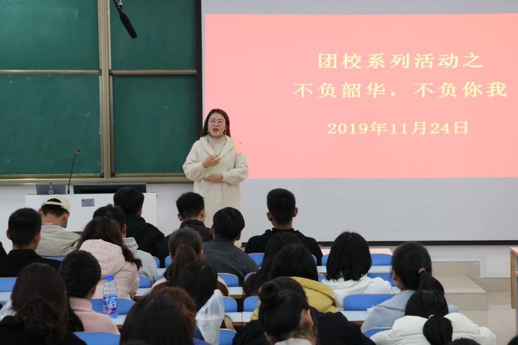 为了让同学们能更好地适应大学生活。11月24日,tyc7111cc太阳成集团于社科楼517展开了主题为“不负韶华,不负你我”的团课活动。tyc7111cc太阳成集团19级全体新生参加活动。主讲人为18级法学班团支书马思凡。