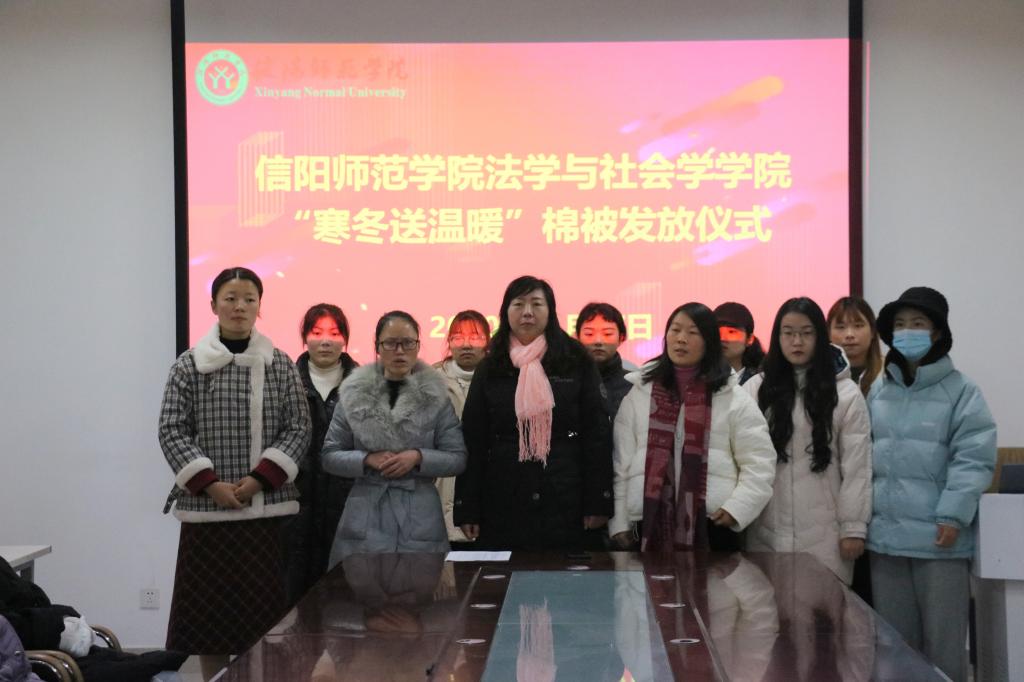 近日来,天气转冷。为进一步做好对贫困生的帮扶,帮助他们顺利过冬,tyc7111cc太阳成集团于11月27日在社科楼412举行了爱心棉被发放仪式。党委副书记樊德玲、团委书记袁艳红、资助专员王艳丽、tyc7111cc太阳成集团主席团成员以及所有获得爱心棉被的学生参加了此次发放仪式。