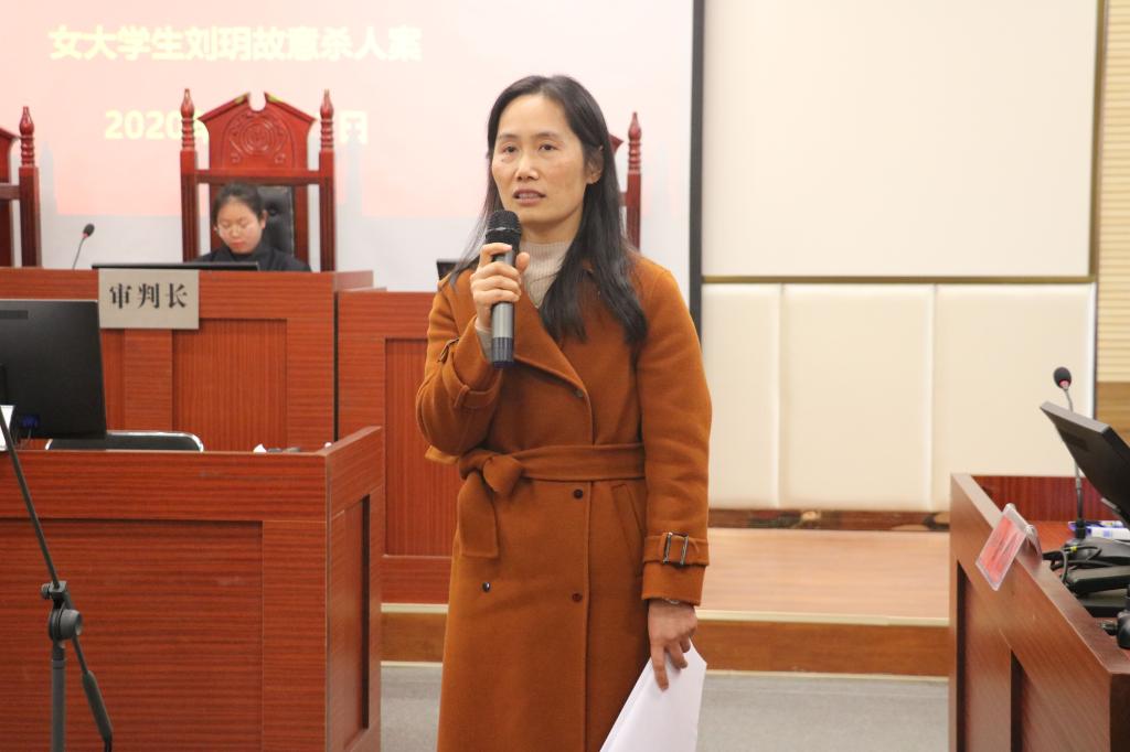 本次模拟法庭所审理的案件为《女大学生刘玥故意杀人案》。模拟法庭庭审现场气氛庄严肃穆,同学们惟妙惟肖地表演展示了法律工作人员的认真、严谨、一丝不苟的法律工作态度以及公平、公正的法律工作精神,营造出了法庭严肃、庄重的氛围。庭审在书记员宣读法庭纪律中拉开序幕。随后,审判长在全体人员的注视下严肃入场,宣布开庭。法庭调查阶段,由控诉双方对案件进行陈述,并提交原告方的证据。在辩论环节,当事人围绕一段段证据材料展开激烈的辩驳,大家思维敏捷,以犀利的言辞针对对方的漏洞出有力的反击,使得庭审辩论进入一次又一次的高潮。台上的同学们唇枪舌战,台下的同学们全神贯注。张宇和古瑞华先后为本次模拟法庭做综合点评指导。张宇从专业角度指出了本次模拟法庭的一些瑕疵和疏漏,也对学生独立完成本次活动表示肯定和赞赏。古瑞华讲到脚本的几次修改对学生有很大的挑战,但同学们表现很出色,并希望同学们成为真正的法律工作者。