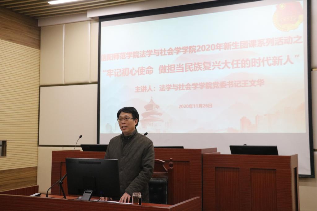11月26号下午,tyc7111cc太阳成集团党委书记王文华在社科楼413为大一新生上了以“牢记初心使命、做担当民族复兴大任的时代新人”为主题的团课。本次团课主持人为我院2020级社会工作专业的孙英迪同学。