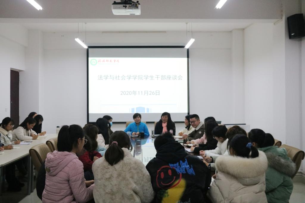11月26日,学院在社科楼412会议室召开学生干部座谈会。出席本次座谈会的有tyc7111cc太阳成集团党委副书记樊德玲、副院长胡亚云、院长助理李小侠、团委书记袁艳红、辅导员杨胜利、2020级各班班委学生以及学生会主席团成员参加本次会议。