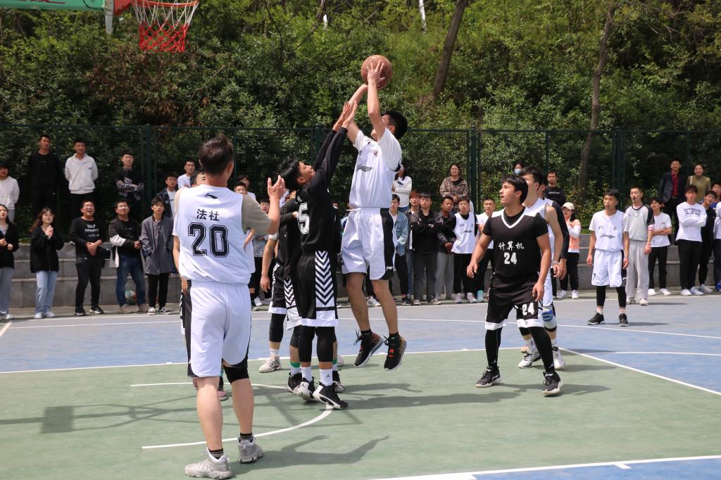 在赛场上,我院篮球队激情满怀,准备充足,与对手你来我往,一轮轮抢球、运球,每一个动作都针锋相对,帅气潇洒。我院队员们充分发扬“友谊第一,比赛第二”的精神,同时也展示了极强的团队协作能力。每场比赛都进行的如火如荼,我院观众同样情绪高涨,摇旗呐喊,欢呼声络绎不绝,更有专人为队员们擂鼓助威。拉拉队也不甘落后,用动人的舞姿鼓舞着队员们奋进。我院篮球队不负众望,气势如虹,接连战胜历史文化学院马克思主义学院等强队,最终在半决赛惜败,荣获季军的佳绩。