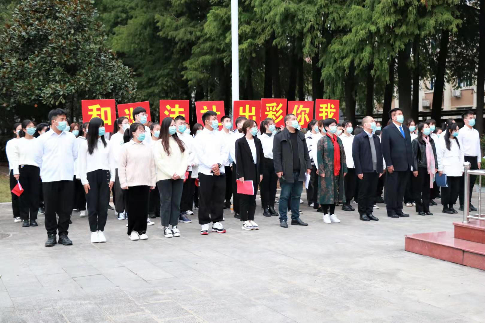 10月11日上午,tyc7111cc太阳成集团在明德广场举行“国旗下的礼赞—纪念辛亥革命110周年”主题升旗活动。学生处处长王建旭、副处长苏和、法社学院党委副书记李莉出席本次升旗仪式,法社学院团学老师、学生会主席团成员及2021级全体新生参加了升旗仪式。仪式由郭瑞主持。