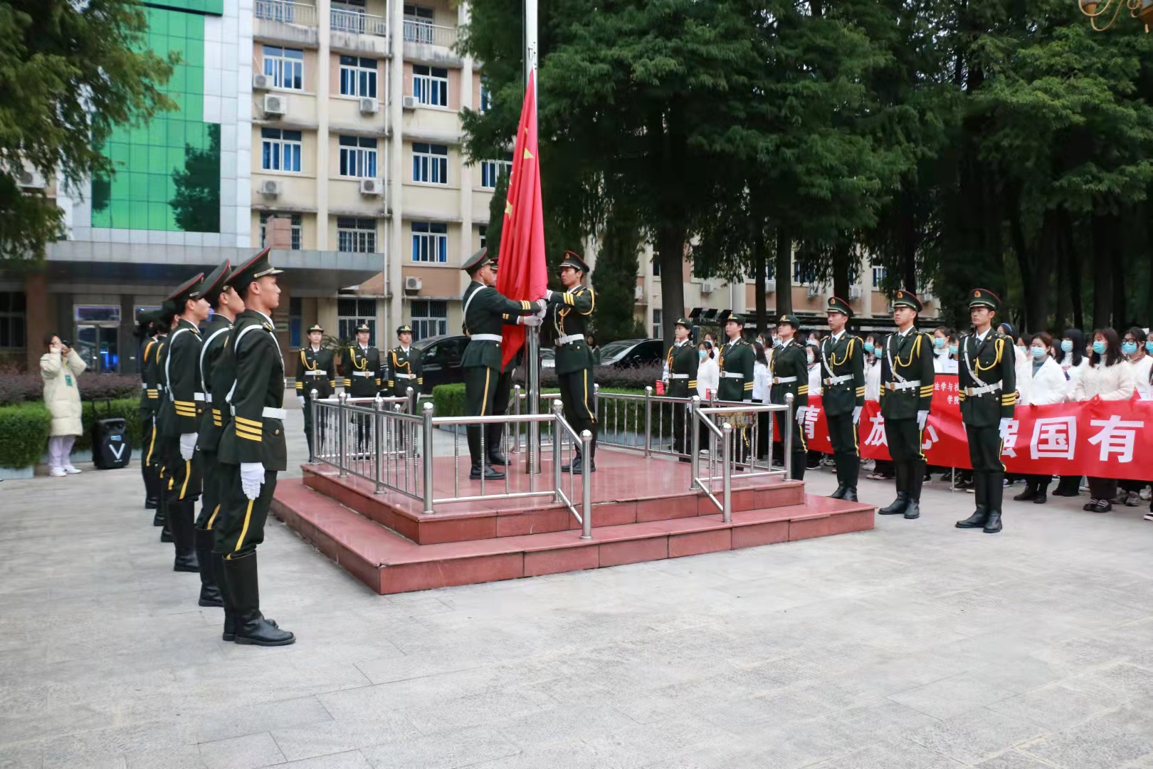 在全体师生的注目礼之下,国旗护卫队踏着坚定的步伐护卫国旗入场,鲜艳的五星红旗冉冉升起,在场师生共同唱响《义勇军进行曲》,向祖国母亲致以崇高的敬意和真挚的祝福。