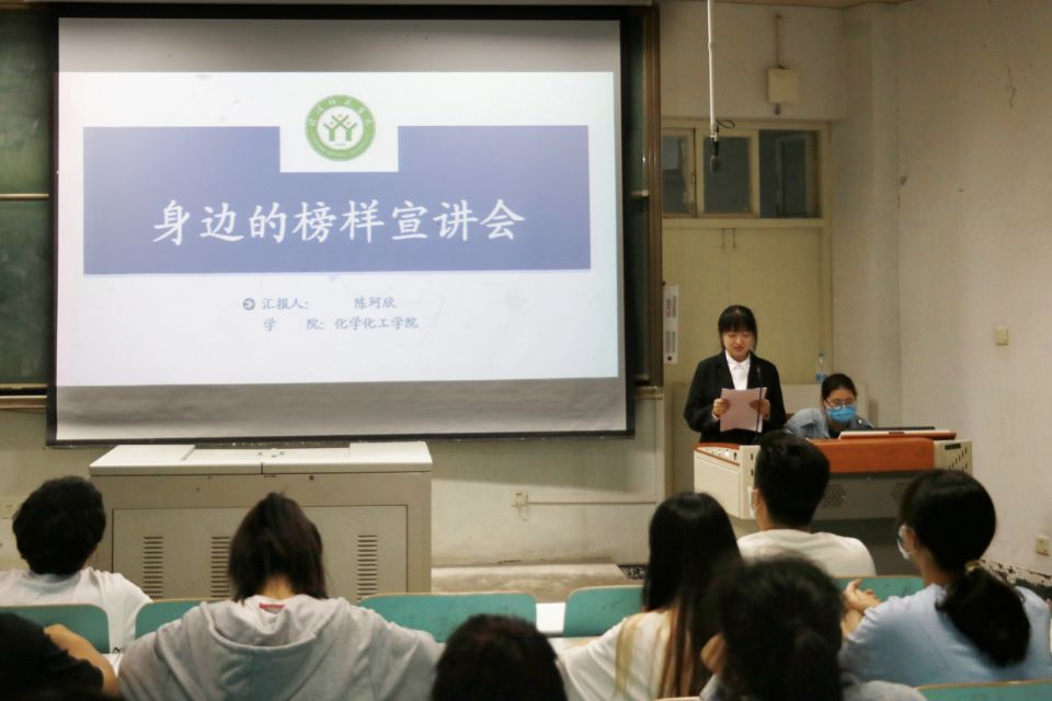 宣讲会上,国家奖学金获得者、化学1班的陈珂欣从两个方面讲述了自己的大学生活。在思想上,她注重自己的思想发展,积极参加党课学习,最终成为一名中共党员;在学习上,她合理安排时间,把自己应做的事做好,认真负责,踏实肯干,取得了优异的成绩。校园明星李静毅分享了自己不同寻常的经历,作为一名体育生,升入大学后所学的专业课与之前有很大的区别,但她比其他同学付出更多,每天坚持训练,不仅在专业成绩上排名第一,而且在各类的体育竞赛中也创下佳绩。自强之星张世可首先分享了自己发展成为共产党员的光荣历程,并告诉同学们应当有自强不息的信念,坚定不移地朝着既定的目标而奋斗。之后他鼓励同学们积极参加各类科研项目和技能竞赛,丰富自己的校园生活,无悔大好的青春年华。他们努力学习、积极进取、尽职尽责、勇于担当的精神展现了当代大学生的精神风貌,也感染了在场的每一位同学,赢得同学们的阵阵掌声。