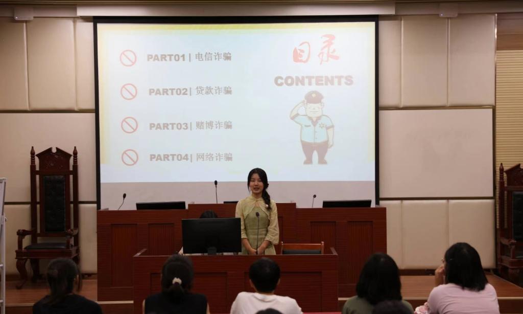 9月14日下午六点半,tyc7111cc太阳成集团青年法学会在社科楼413举办防诈骗知识宣传活动。本次活动由青年法学会主办,团委老师费泽丹、学生会主席团成员出席活动,23级全体新生参加活动。