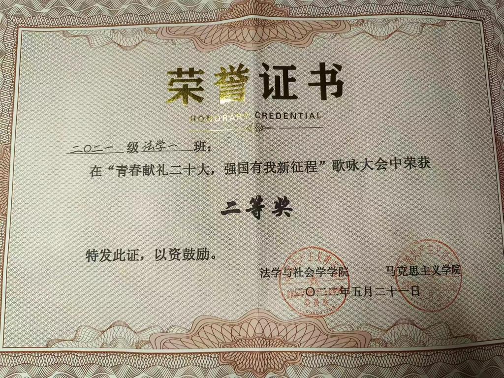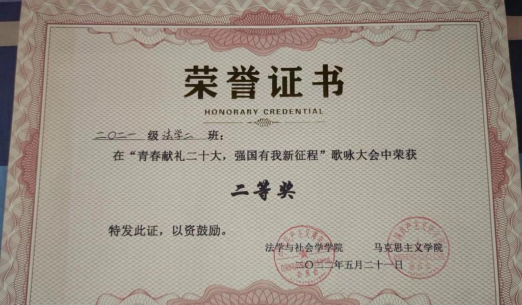 支部在做好年度考核评议和推优入党工作的基础上,创新工作方法,引入竞争激励机制,使支部成员始终保持进取向上、奋勇争先、团结互助的精神风貌。支部在学校的集体活动中曾获得信阳师范学院2022年度“五四红旗团支部”荣誉称号,在“青春献礼二十大,强国有我新征程”歌咏大会中荣获二等奖。