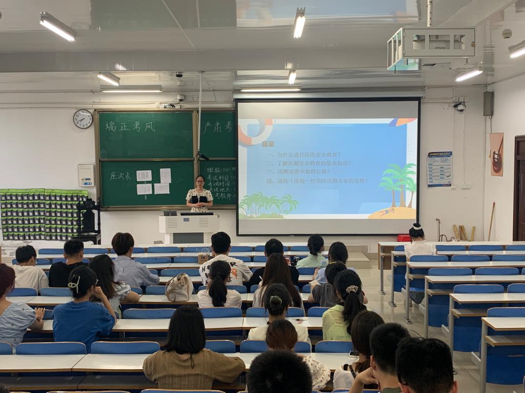 防汛主题教育,安全与我同行。为贯彻落实学校的防汛工作,增强学生防汛安全意识,辅导员王艳丽开展暑期线上线下相结合的防汛安全教育主题班会,结合实例给大家讲解了因暴雨导致的洪涝灾害产生的特大危害,以及加强防汛工作的重要性,并带领部分在校学生进行了实地演练,提升了学生们的应急处理能力。