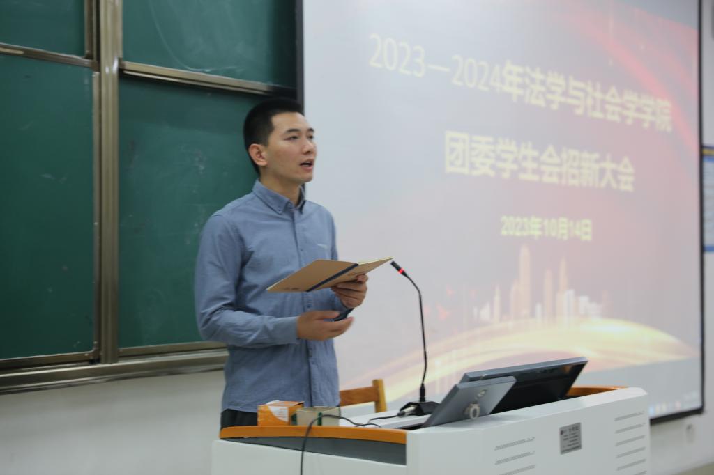 为了发现并吸纳2023级新生中的优秀人才,促进学生会更好发展,使其在学生会的舞台中提高自我、服务同学,我院于10月14日在社科楼517开展2023-2024学年团委学生会招新。学院专职辅导员费泽丹、主席团成员以及学院2023级全体新生参加本次活动。此次活动由秦浩主持。