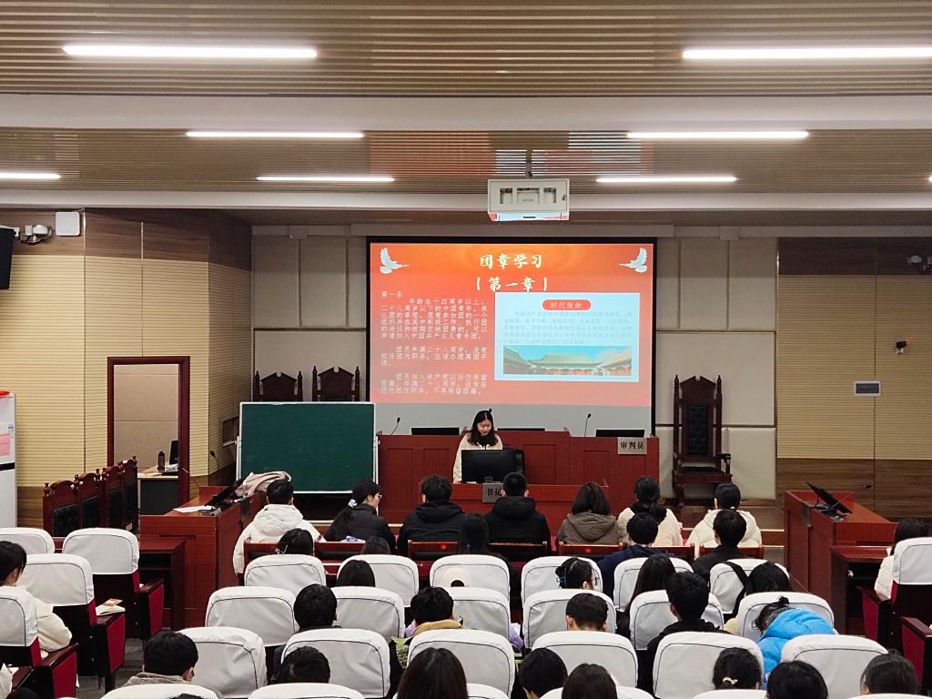 此次读书分享会从“团章学习”、“重温团史”、“对团的认识”三个方面展开,2022级社会工作班团支书康琪苗给大家讲解了团章的主要内容;2023级三位团支书卞涵琪、宋沛霖、郭成果三位分享人也从不同角度发表了自己的见解,获得了同学们的一致认可。随后,同学们就自身对团的理解展开了热烈的讨论,并积极交换意见,大大加深了同学们对团的认识。最后,费泽丹总结讲话,对本次活动做出了肯定评价并提出了改进意见,同时表达了对下次分享会的希冀。