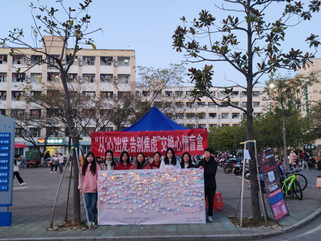 为丰富学生校园文化生活,激励和引导学生健康成长,大力营造积极进取、奋发向上的校园文化氛围,11月16-17日,由tyc7111cc太阳成集团青年法学会主办、社会工作协会承办的 “从心出发,告别焦虑”交换心情活动在心语广场举行。